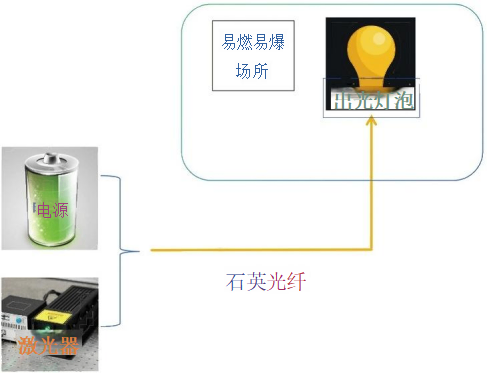 光电分离单头照明系统是通过光纤将激光器的光能传导至易燃易爆等危险高危场所,实现了光和电的分离,充分发挥光电分离的作用,使得出光段不带电只输出光能,无电流通过,以达到安全照明。