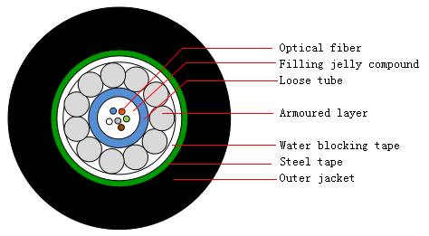 GYXS (Structurewith central tube, Steel wire armoring, Steel-polyethylene adhesive sheath)