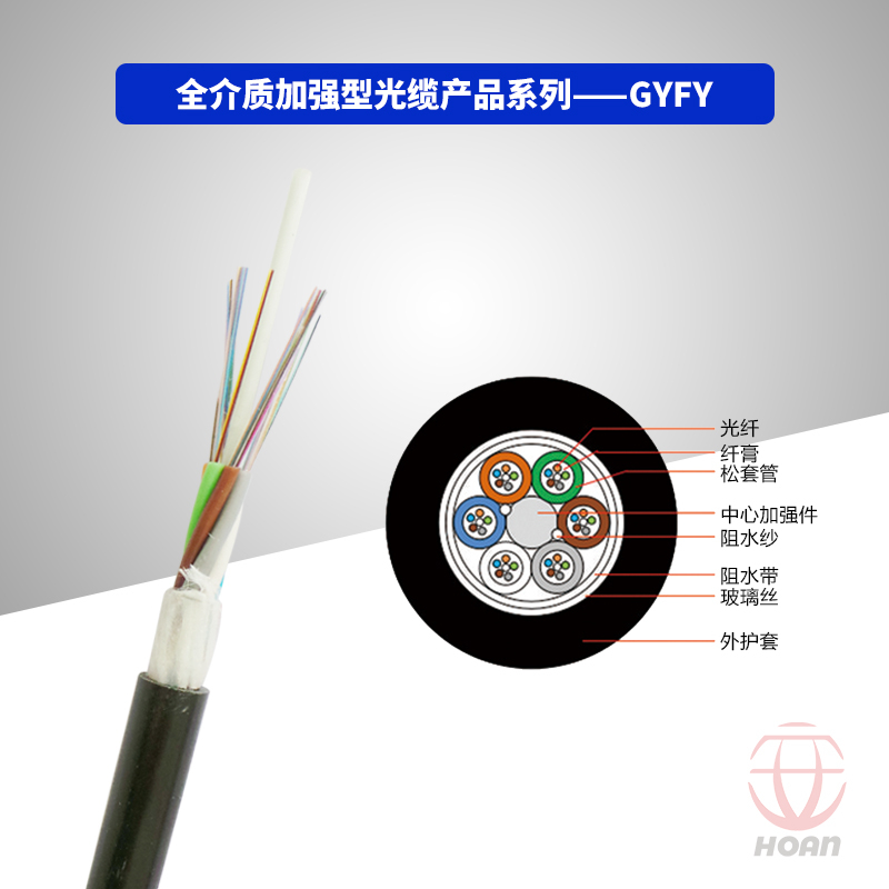 GYFY (松套层绞结构、非金属加强件、半干式阻水、玻璃丝增强件、聚乙烯外护套)