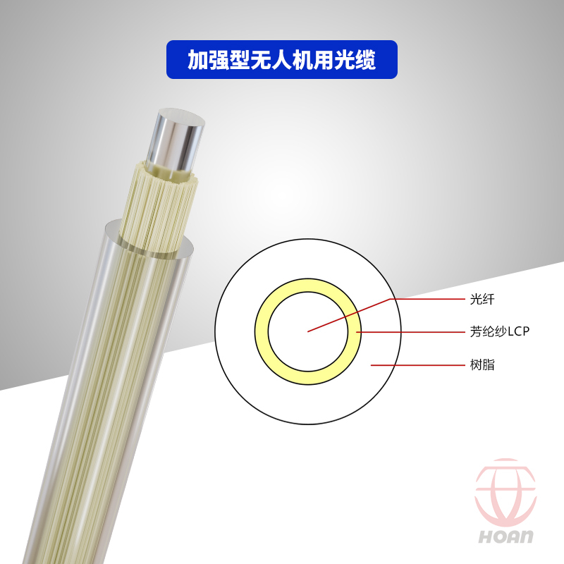 加强型无人机用光缆(光纤、芳纶纱LCP、 树脂、可能包含的包装物)