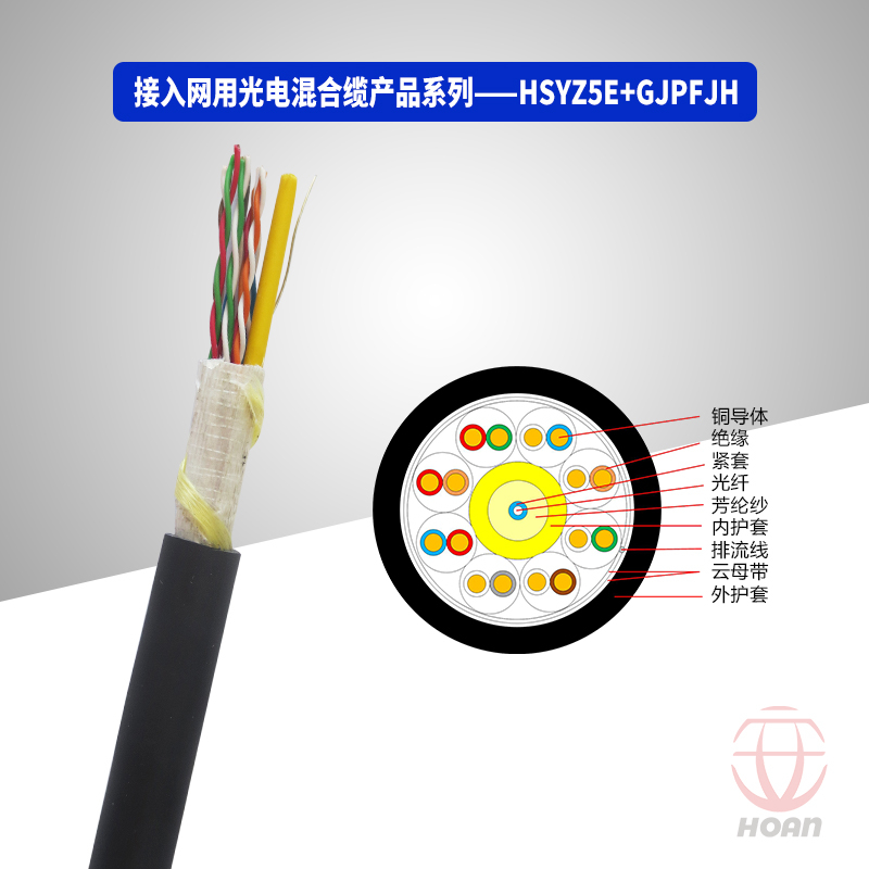 HSYZ5E+GJPFH(层绞式结构、聚乙烯绝缘、坚套结构、芳纶纱加强件、云母带,低烟无卤阳燃外护;)