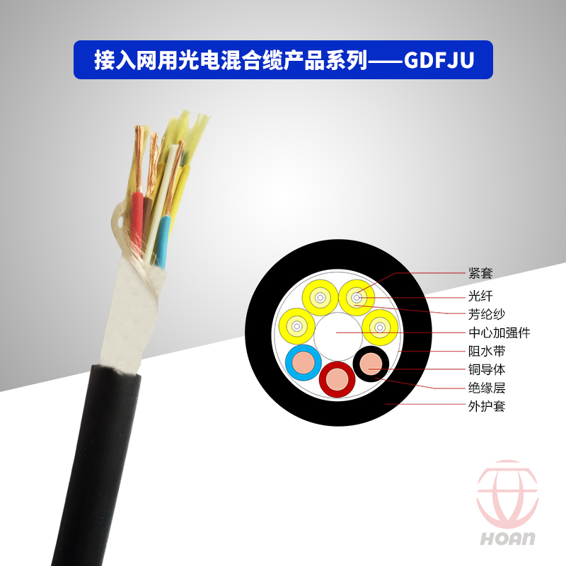 GDFJU(非金属加强构件、紧套光纤、馈电线、TPU外护套通信用室外光缆)