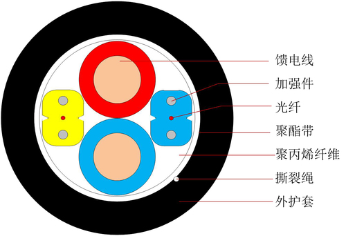 该光缆主要运用在直流远程供电系统或取电不方便的地段使用