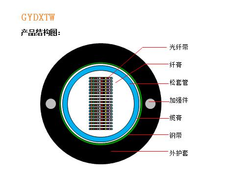 GYDXTW (光纤带、中心管结构、缆膏填充、钢聚乙烯粘接护套)