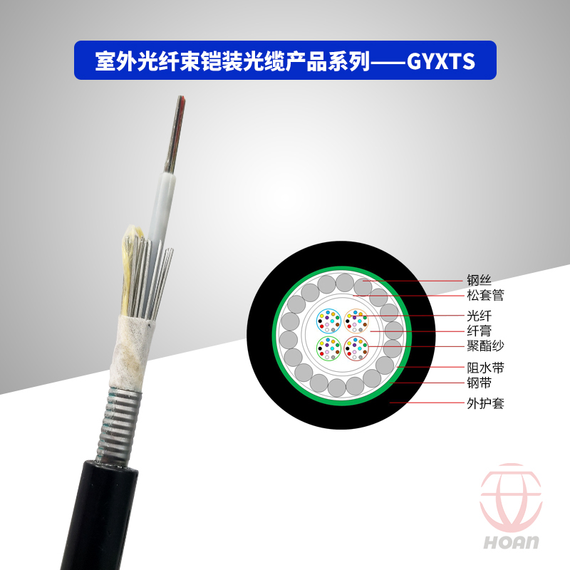 GYXTS (中心管结构、钢丝铠装、钢聚乙烯粘接护套)
