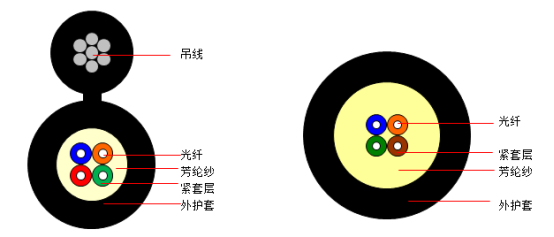 GJYFJCH (紧套结构、芳纶纱加强件、LSZH外护套、自承式)