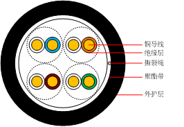导体间介电强度(最小) | 2.5kV/2s | 允许弯曲半径 | 不小于8倍电缆外径 | |||