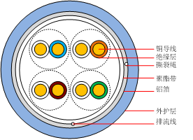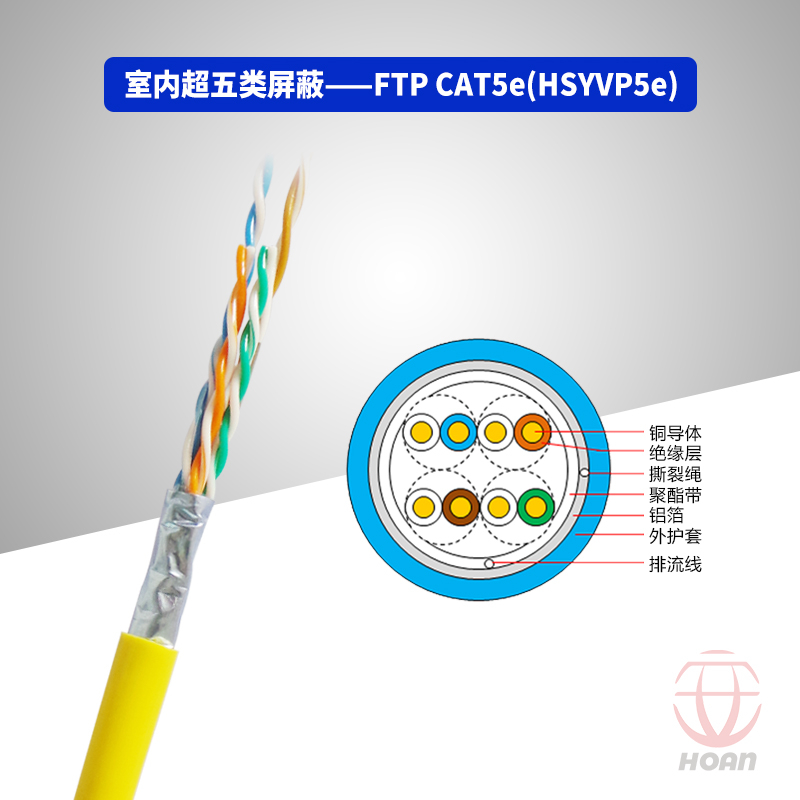 FTP CAT5e HSYVVP5e(超5类屏蔽、聚乙烯绝缘、聚氯乙烯内护套、聚氯乙烯外护套)