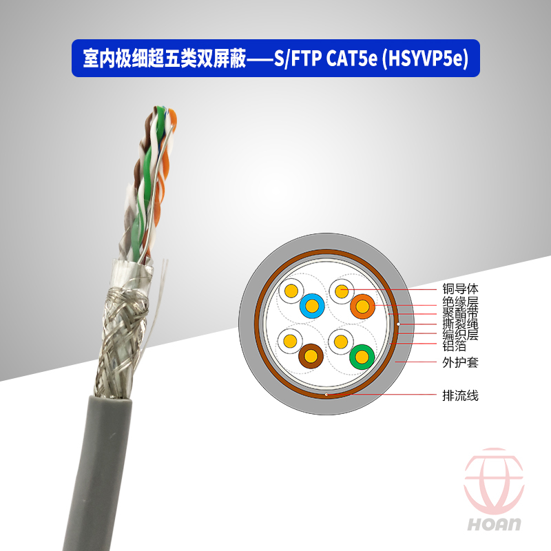 S/FTP CAT5e HSYVP5e (超5类、聚乙烯绝缘、聚氯乙烯护套)