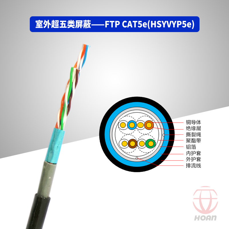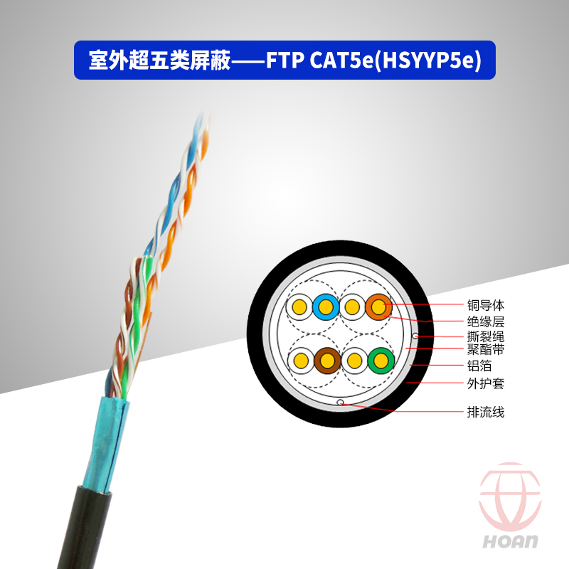 FTP CAT5e HSYYP5e(超5类屏蔽、聚乙烯绝缘、聚乙烯护套)