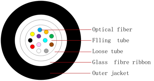 GYFXF (Structure with central tube, Non-metal strength member, PE sheath)