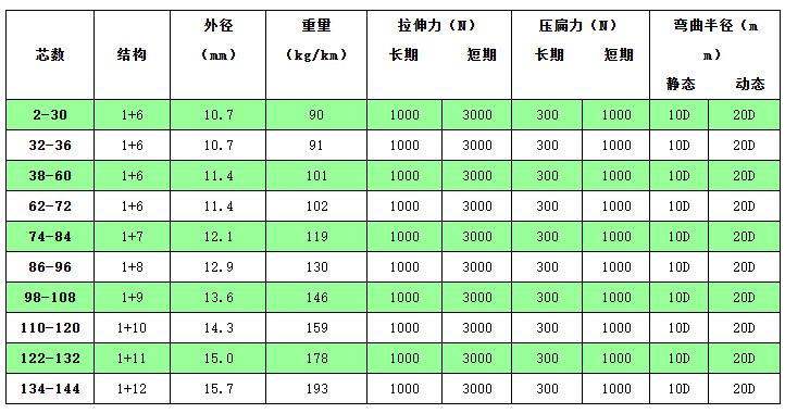 松套层绞结构、非金属加强件、半干式阻水、玻璃丝增强件、聚乙烯外护套