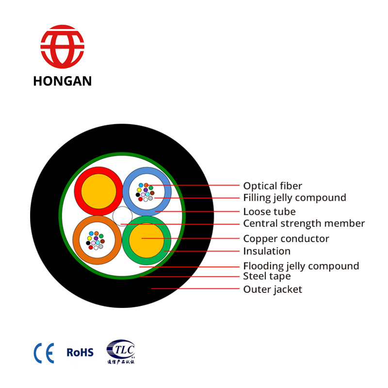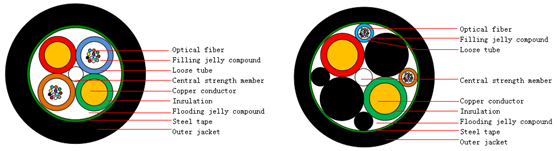 GDTS(Loose tubestranding, Metal strength member, Flooding jelly compound, Steel-polyethyleneadhesive sheath)
