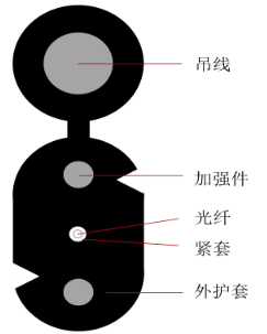 GJYIXH蝶形引入光缆是将光纤置于尼龙紧套内,两侧放置两根平行钢丝作为加强元件(或非 金属 FRP 加强件),外侧再加一根增强元件后挤制低烟无卤阻燃护套。