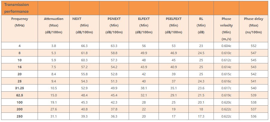 Six types of non-shielded communication credit horizontal pair symmetric cable series