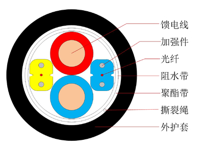该光缆主要运用在直流远程供电系统或取电不方便的地段使用