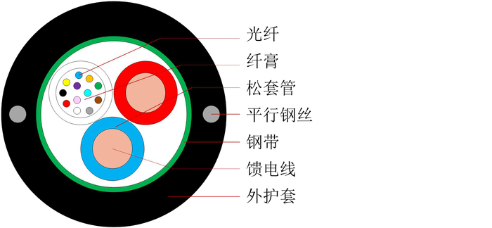 该光缆主要运用在直流远程供电系统或取电不方便的地段使用。