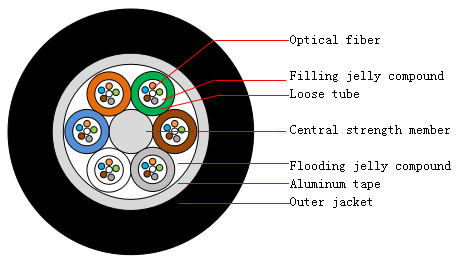 GYTA (loose layer twisted structure, metal reinforcement, cable paste filling, aluminum polyethylene adhesive sheath)