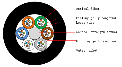 GYFTY (loose layer twisted structure, non-metallic reinforcement, cable paste filling, polyethylene sheath)