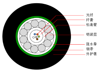 GYXTS (中心管结构、钢丝铠装、钢聚乙烯粘接护套)