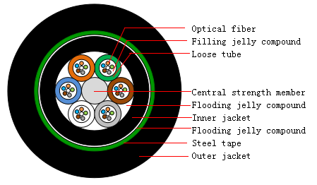 GYTY53 (loose layer twisted structure, metal reinforcement, cable paste filling, polyethylene inner sheath, steel polyethylene adhesive outer sheath)