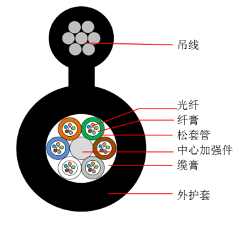 带有钢吊线的8字形架空结构,敷设方便。