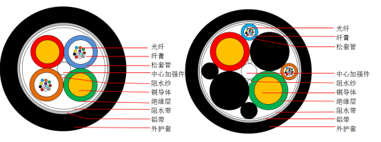GDHTA(松套层绞结构、金属加强件、半干式阻水、铝聚乙烯粘接护套)