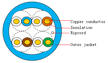 UTP CAT5 HSYV5 (Category 5, polyethylene-insulated, PVC-coated)