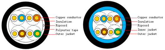 UTP CAT5 HSYVY5 (Category 5, polyethylene insulation, PVC inner sheath, polyethylene outer sheath)