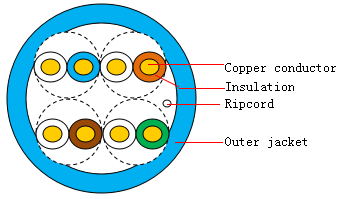 UTP CAT5e HSYV5e (Category 5e, polyethylene-insulated, PVC-coated)