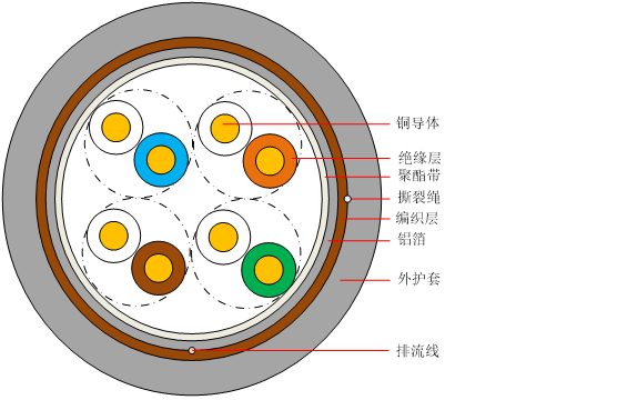 S/FTP CAT5e HSYVP5e (超5类、聚乙烯绝缘、聚氯乙烯护套)