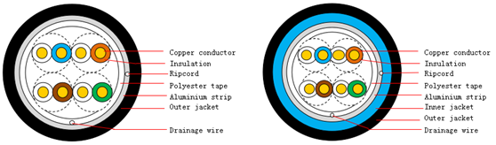 FTP CAT5e HSYVYP5e (Category 5e Shielded Cable with Polyethylene Insulation, PVC Inner Sheath, and Polyethylene Outer Sheath)
