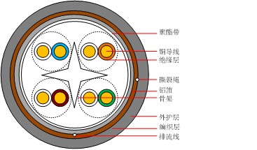 导体间介电强度(最小) | 2.5kV/2s | 允许弯曲半径 | 不小于8倍电缆外径 | |||